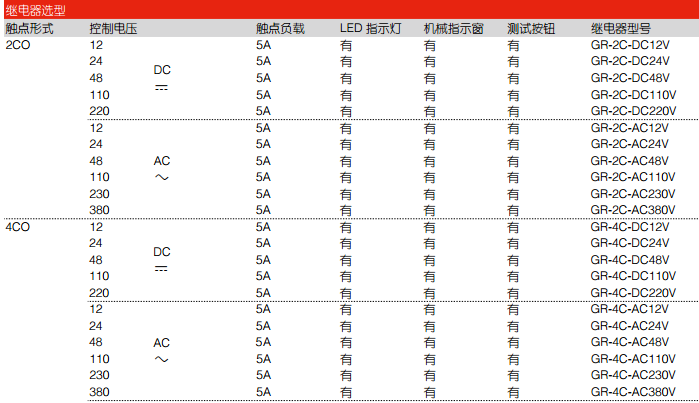 ● 觸點(diǎn)電流為5A (2CO), 5A (4CO)
