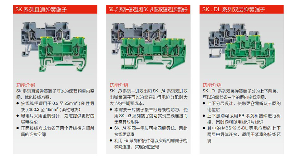 ● 先進(jìn)的回拉式彈簧設(shè)計,保證足夠大的接觸面積和壓緊力● 拆卸安裝方便,節(jié)省安裝時間● 更好的抗振性能,適用于軌道、機械等振動較大場合● V0阻燃等級塑料,杜絕火災(zāi)隱患● 100%鹽霧測試,防腐蝕,更長的使用壽命