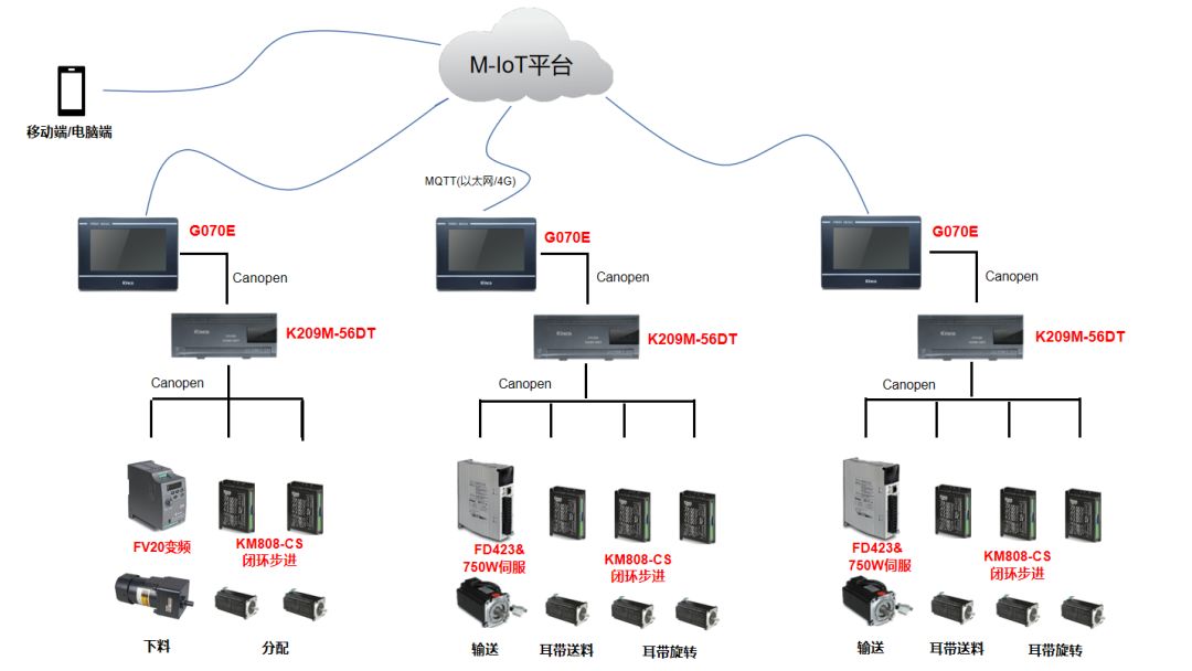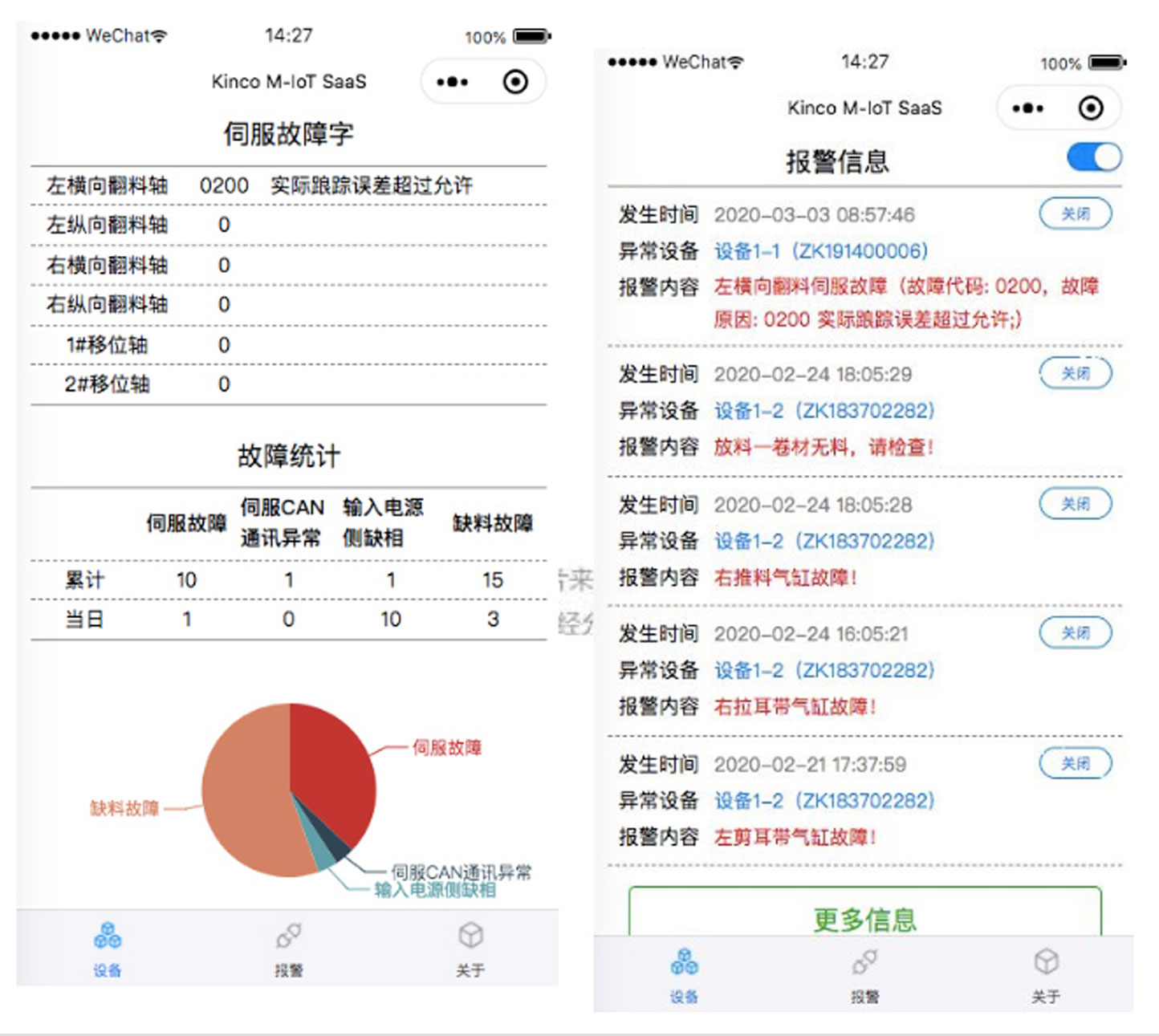 步科口罩機Plus方案,在CANopen總線伺服驅(qū)動產(chǎn)品基礎(chǔ)上,迅速升級M-IoT物聯(lián)網(wǎng)遠程運維服務(wù),快速完善了設(shè)備報警和維護信息,增加了遠程診斷服務(wù)功能,進一步打通了現(xiàn)場、設(shè)備商和部件商的溝通渠道,幫助現(xiàn)場人員快速排查故障。