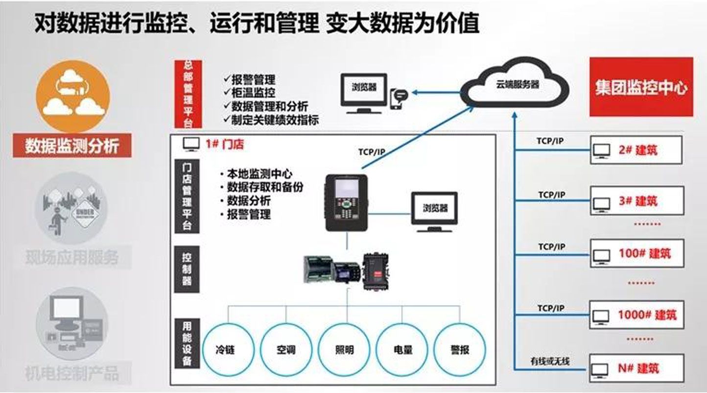 這些自動控制解決方案集成了物聯(lián)網(wǎng)功能,通過有線和無線的方式集中控制暖通空調(diào)、制冷、照明等設(shè)備,實現(xiàn)統(tǒng)一的能源管理,能夠極大地優(yōu)化設(shè)備管理,降低能源支出,讓商業(yè)樓宇和食品超市實現(xiàn)綠色環(huán)保的可持續(xù)發(fā)展。