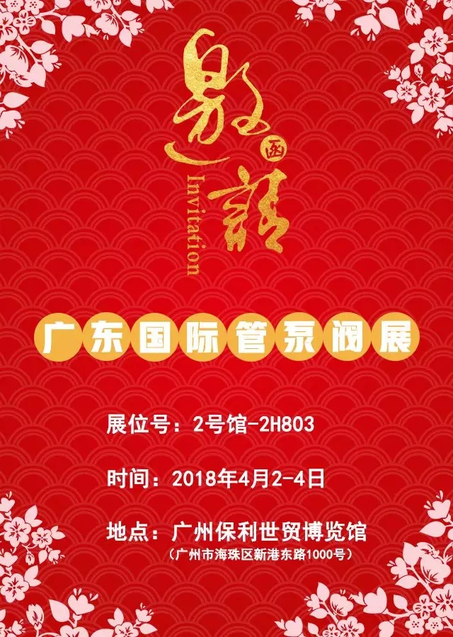 2018廣東國際泵管閥展于4月2-4日在廣州保利世貿博覽館舉辦。50萬大數據資源平臺,主辦方大力開發(fā)華南地區(qū)終端市場、外貿及海外經銷商,為你帶來華南首屈一指的專業(yè)展會。