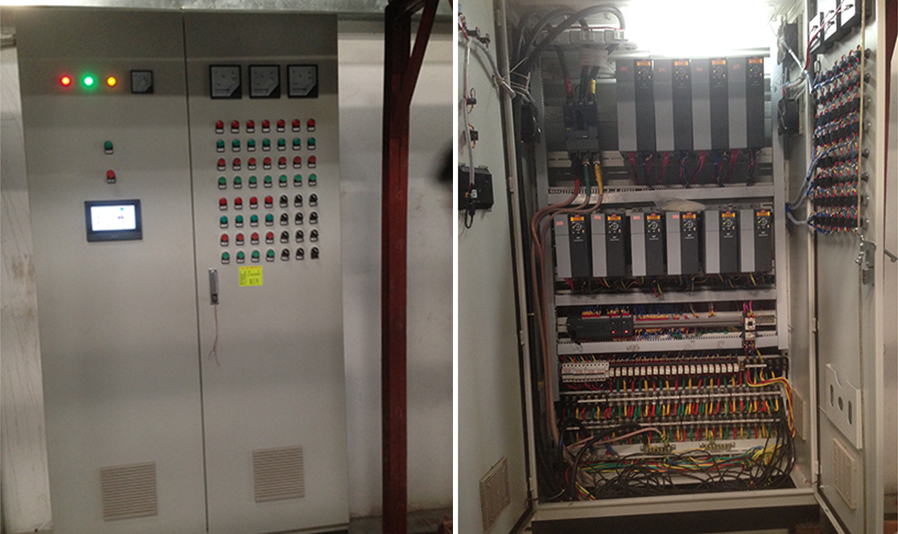 該系統(tǒng)設(shè)計(jì)之初,均沒有考慮冷卻泵、冷凍泵、循環(huán)泵采用變頻控制(如下表1),而是采用傳統(tǒng)的星三角啟動(dòng)方式(舊電柜見下圖1),根據(jù)對系統(tǒng)運(yùn)行工藝的觀察,泵總功率110.5KW,電能浪費(fèi)嚴(yán)重,存在較大的節(jié)能空間。
