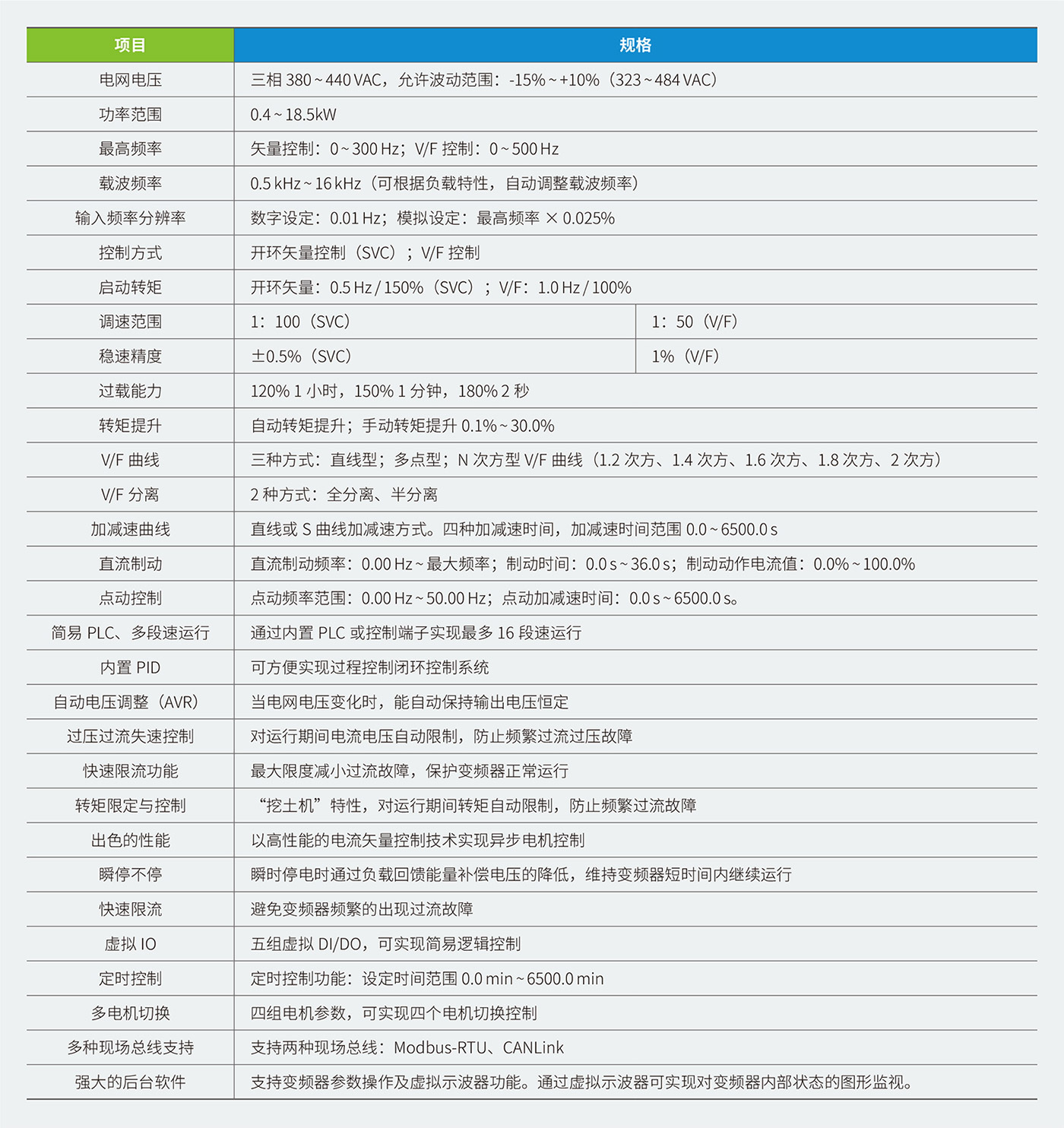 MD310系列變頻器是一款通用緊縮型多功能變頻器,采用開環(huán)矢量和V/F 控制方式,以高性能的電流矢量控制技術(shù)可實現(xiàn)異步電機控制。MD310 標配RS485 通訊接口,支持Modbus RTU 通訊,可擴展I/O 擴展卡、CAN 通信擴展卡。內(nèi)置PID 可方便實現(xiàn)閉環(huán)過程控制系統(tǒng),最多可實現(xiàn)16 段速運行。